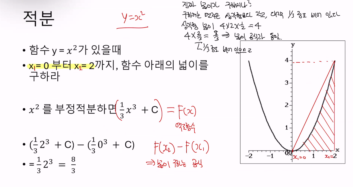 정적분: 부정적분을 활용해 함수 아래의 넓이를 구하는과정