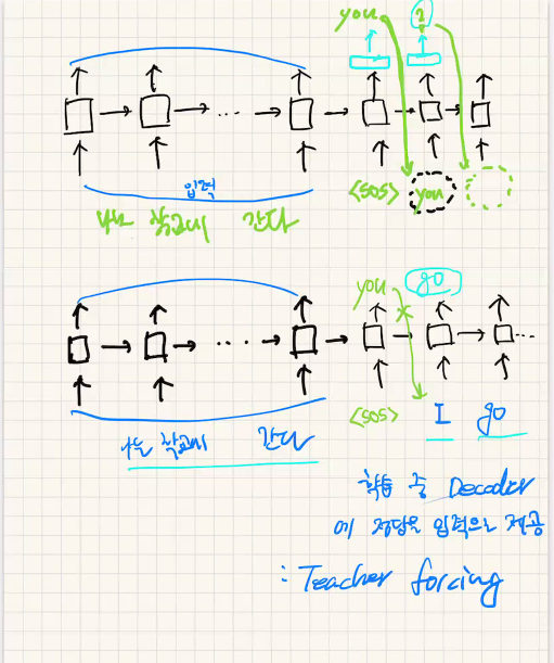 학습중 decoder에 정답을 입력으로 제공