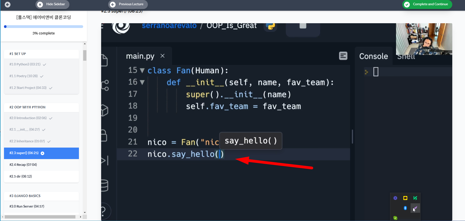 python inheritence (phython의 class의 constructor( init 객체지향(object oriented player))파이썬_장고 2024. 11. 26. 12:47