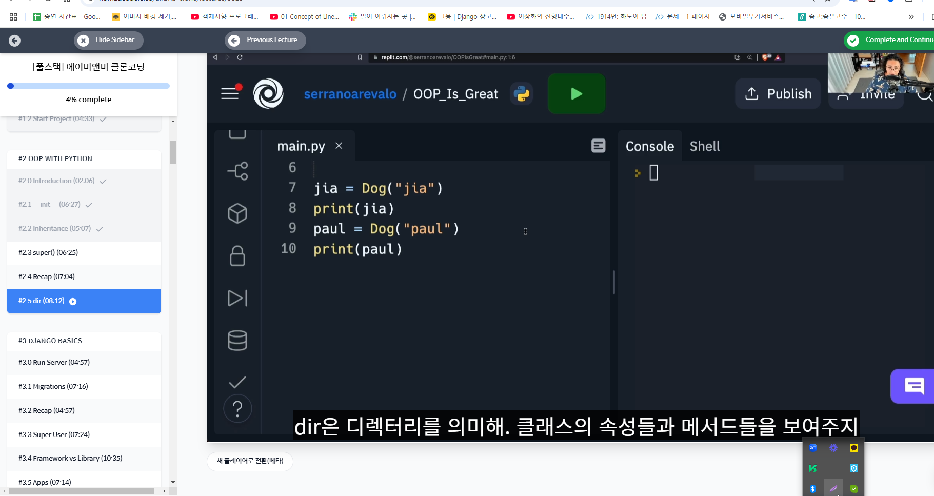 아래) dir는 디렉터리를 의미해. 클래스의 속성들과 매서드를 보여줌