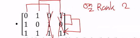 행렬의 랭크는, 선형독립적인 행(또는 열)의 갯수를 나타낸다.