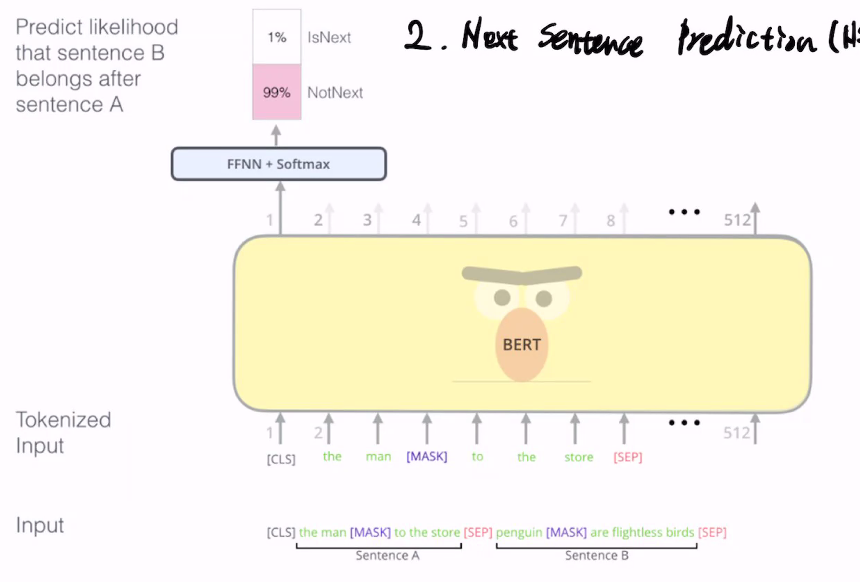 2. NSP: 두 문장이 이어진 문장인지 판별함으로써 자연어 이해